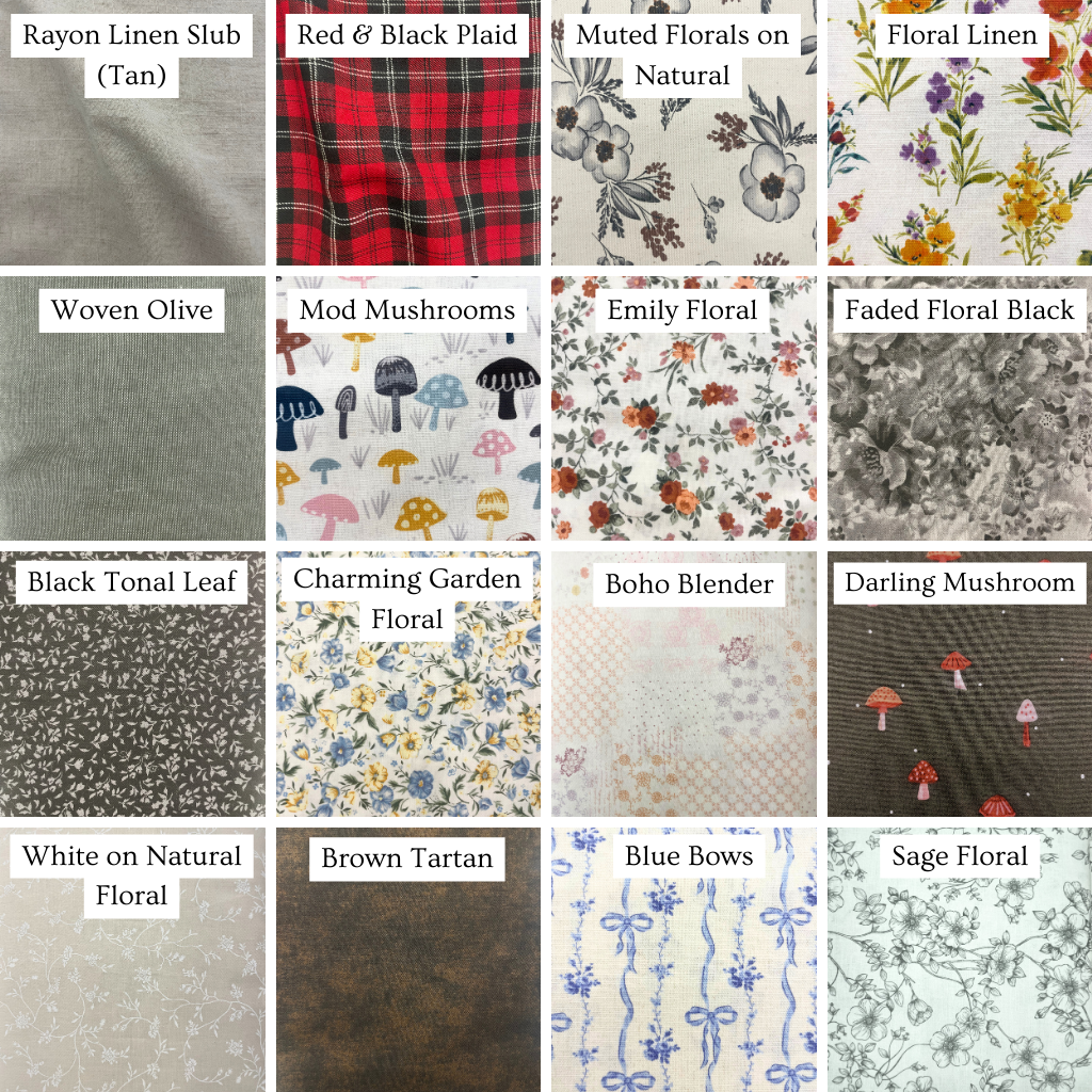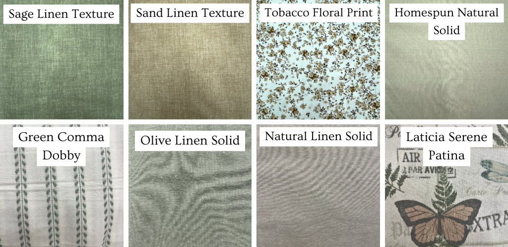 I apologize for the weird swirly effect of some of the fabrics below… (It looks especially crazy on the solid linens and mushroom print) I’m not sure why my camera was doing that but the texture is clean and uniform, don’t worry!